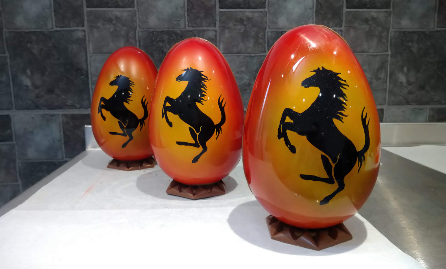 Easter is one of the busiest times of the year for any chocolatier and in 2020 we launched our "Heroes of Motorsport" 150mm tall Easter egg. These are our fully customisable, decorated eggs & over the years we have created versions celebrating Ferrari, Stirling Moss, Daniel Ricciardo, Lewis Hamilton, MB Motorsport, W Series, Lando Norris and many other racing drivers, series & teams. Due to the time consuming nature of creating these fully customiseable & decorated eggs, orders need to be placed well in advance of Easter to guarantee a production slot.